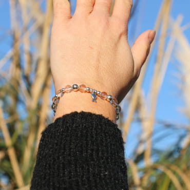 - une perle en cristal de roche transparente,