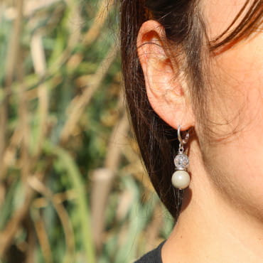 Découvrez ces boucles d’oreilles artisanales pour femme Kenitra, où la lumière danse entre une perle en cristal de roche transparente et une perle en verre. Un bijou délicat, inspiré par la douceur des reflets du bord de mer et l’authenticité de l’esprit nature. Parfaites pour apporter une touche de luminosité à vos journées, elles évoquent l’évasion et le savoir-faire fait main, typiques des créations conçues sur l’Île d’Oléron.