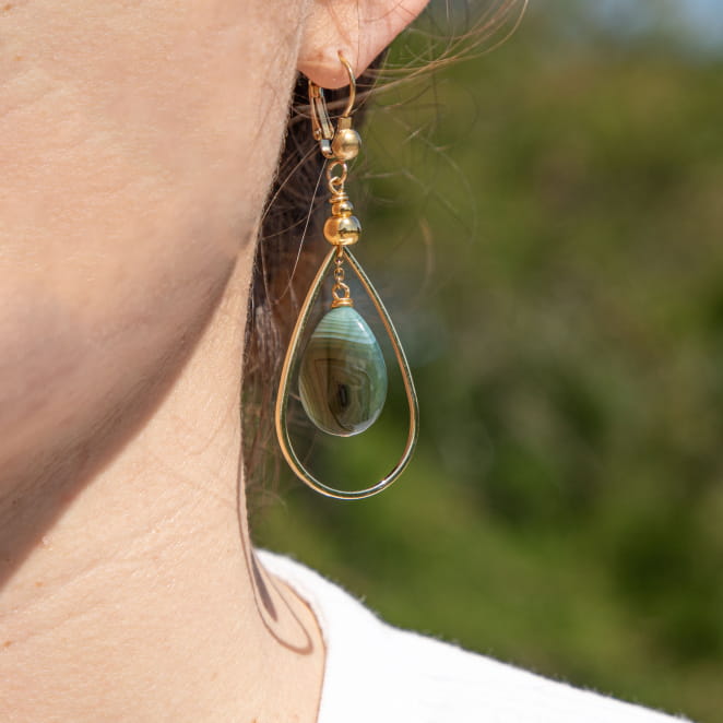 - d'une perle en forme de goutte en pierre d'agate vert,