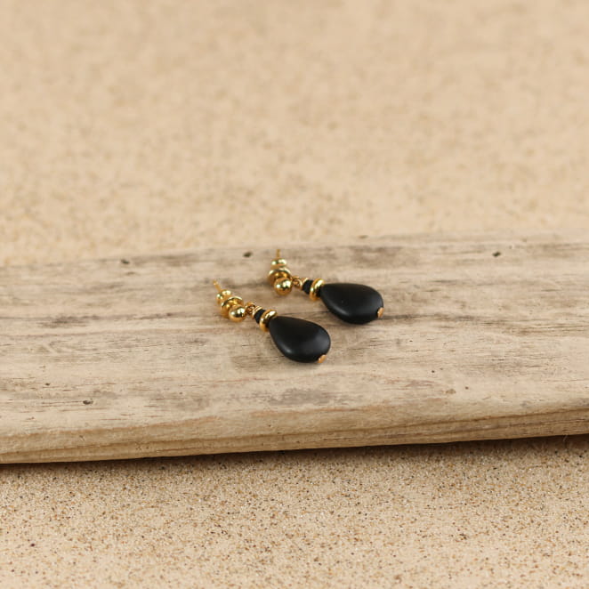 Découvrez notre paire de boucles d'oreilles pour femme Léna. Un bijou composé de perles naturelles et de verre qui se marient parfaitement pour ajouter une touche de délicatesse et de douceur à votre style ! Sa perle en agate et sa perle en verre apporte avec subtilité une touche de couleur.