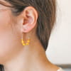 Optez pour les boucles d’oreilles Leyana, une création lumineuse. Ces créoles, agrémentées de perles en rocaille jaune, de perles argentées et de perles en verre orange et jaune, apportent une touche de douceur et de couleur à votre look. Elles évoquent l’atmosphère ensoleillée, un accessoire fait main qui ajoute éclat à votre style.
