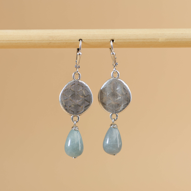 Plongez dans un univers de douceur et de légèreté avec les boucles d’oreilles Liban. Inspirées par l’écume délicate des vagues et la brise légère, elles évoquent un raffinement subtil et une élégance naturelle. Conçues pour être aériennes et agréables à porter, ces boucles tout en finesse apportent une touche de poésie à votre tenue. Leur teinte bleu gris, douce et apaisante, se marie parfaitement avec l’éclat argenté pour un bijou intemporel et lumineux. Une invitation au voyage, entre mer et lumière !