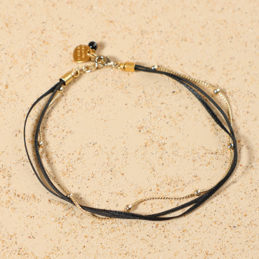 - de perles en hématite et en métal doré d'un flash d’or 24 carats.