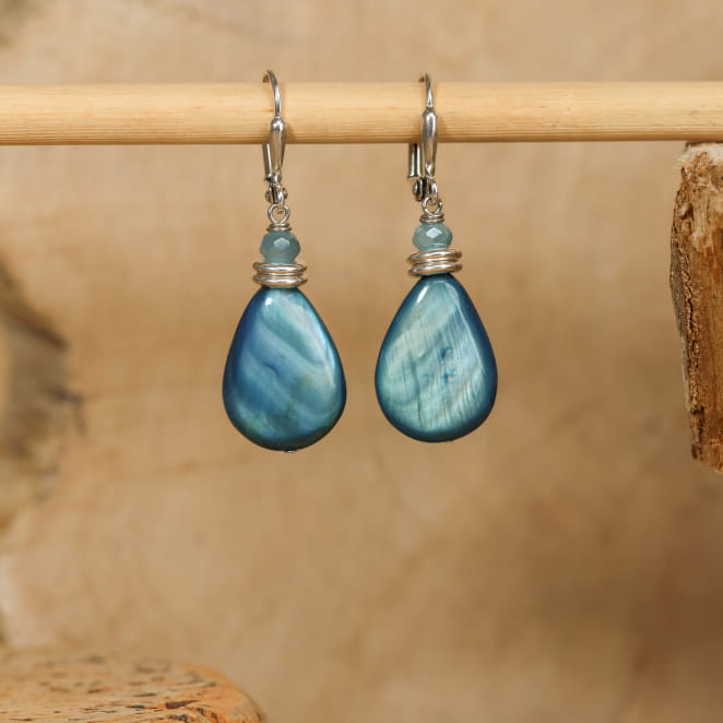 Plongez dans un univers de douceur et d’élégance avec les boucles d’oreilles Lupita Argent & Bleu. Inspirées par l’océan et le ciel, elles associent la délicatesse d’une perle en nacre bleue à l’éclat d’une perle en verre bleu ciel. Leur teinte lumineuse et apaisante rappelle les reflets de l’eau sous le soleil, apportant une touche de fraîcheur et de raffinement à votre style. Montées sur des dormeuses en métal argenté, ces boucles d’oreilles femme sont un véritable bijou intemporel à porter au quotidien comme lors de vos occasions spéciales.