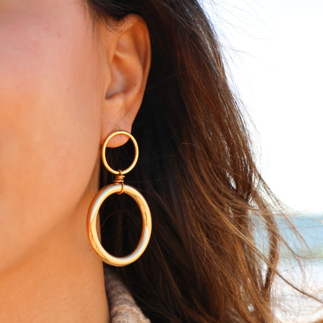 Apportez une touche de soleil à vos tenues avec les boucles d'oreilles dorées Lyana au design délicat et intemporel. Composées de deux anneaux dorés, elles capturent la lumière à chaque mouvement, sublimant votre allure avec une élégance naturelle. Légères et faciles à porter, elles s’adaptent aussi bien à une journée décontractée en bord de mer qu’à une soirée estivale sous les étoiles. Une ode à l'éclat discret, parfait pour illuminer votre quotidien.