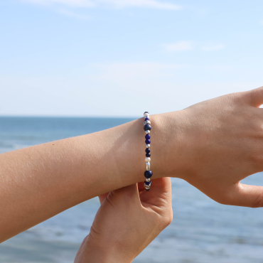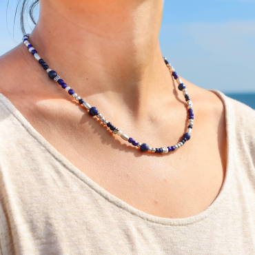 - des perles de lapis-lazuli bleues,