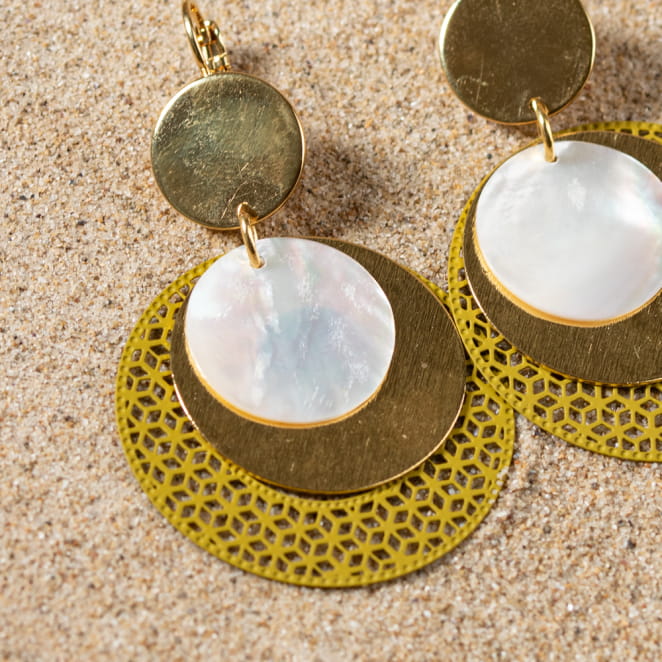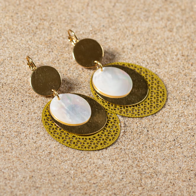 Illuminez votre style avec les boucles d'oreilles Mathilda ! Ces merveilles éclatantes, mêlant disques jaunes et dorés, sont le secret pour transformer n'importe quelle tenue en un chef-d'œuvre de sophistication. Laissez-vous séduire par leur charme audacieux et leur allure irrésistible. Adoptez Mathilda et faites briller chaque instant avec une élégance inoubliable.