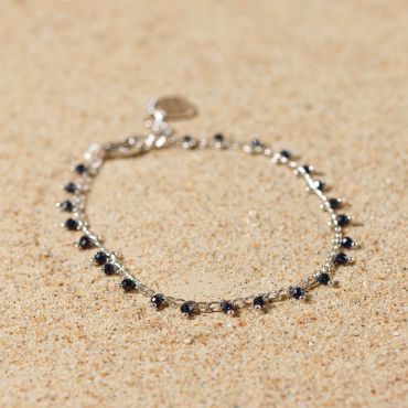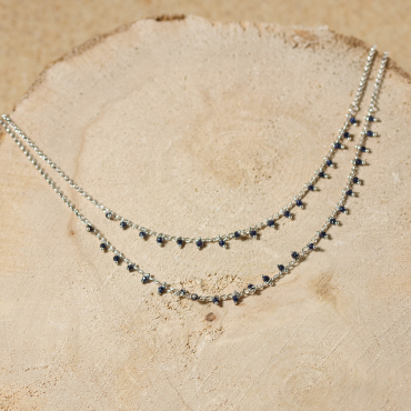 - d'une chaîne grelot avec des perles en pierre de sable bleu marine,