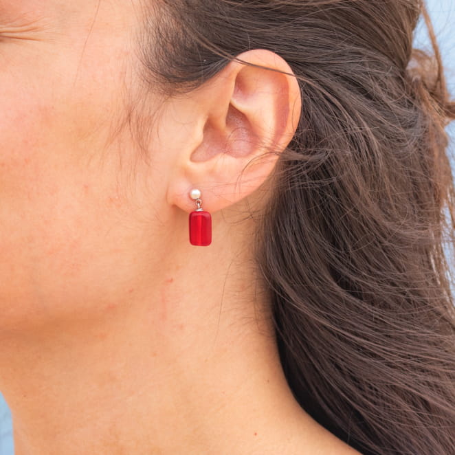 Ces somptueuses boucles d'oreilles Micro, réalisées à la main, combinent l'élégance de l'argenté avec la chaleur du rouge. voir plus