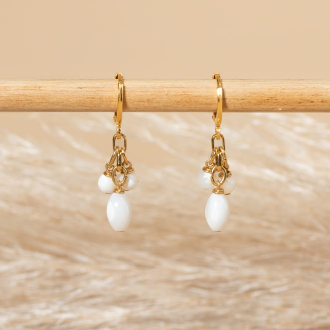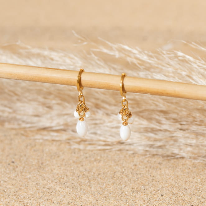 Laissez-vous envoûter par les boucles d'oreilles Milina, où l'éclat doré embrasse la douceur des perles nacrées blanches. voir plus
