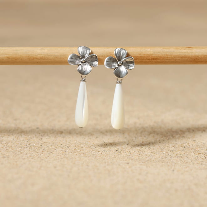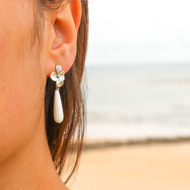 Délicates et féminines, nos boucles d'oreilles Mimizan allient la pureté de la nacre et la finesse floral grâce à son attache. voir plus