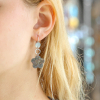 Sublimez votre allure avec les boucles d'oreilles Monoï. Délicatement suspendue par des dormeuses en métal argenté, une jolie fleur en nacre grise apporte douceur et éclat à votre visage. Offrez-vous une touche de sophistication et de charme avec ces boucles qui captivent par leur délicatesse et leur élégance.