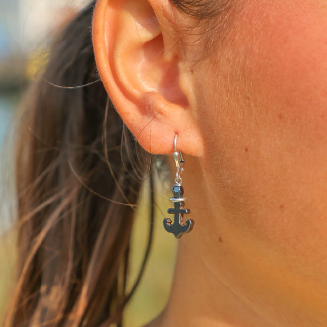Affichez un style élégant et intemporel avec les boucles Mouette. Montées sur une dormeuse en métal plaqué argent 999, elles associent une ancre en hématite grise et une perle assortie pour un look marin chic. L’éclat métallique de l’hématite, à la fois sobre et raffiné, se marie parfaitement avec la finition argentée, créant un bijou discret mais plein de caractère. Légères et faciles à porter, elles apportent une note marine élégante à toutes vos tenues, du quotidien aux occasions spéciales.