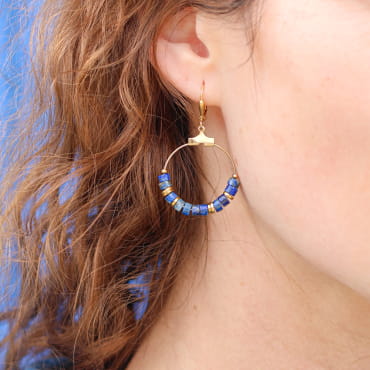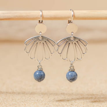 Captivez la délicatesse de l'océan avec les boucles d'oreilles Naïma pour femme, grâce à ses perles en pierre bleue, elles vous transportent au bord de mer de la côte Ouest. voir plus