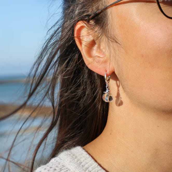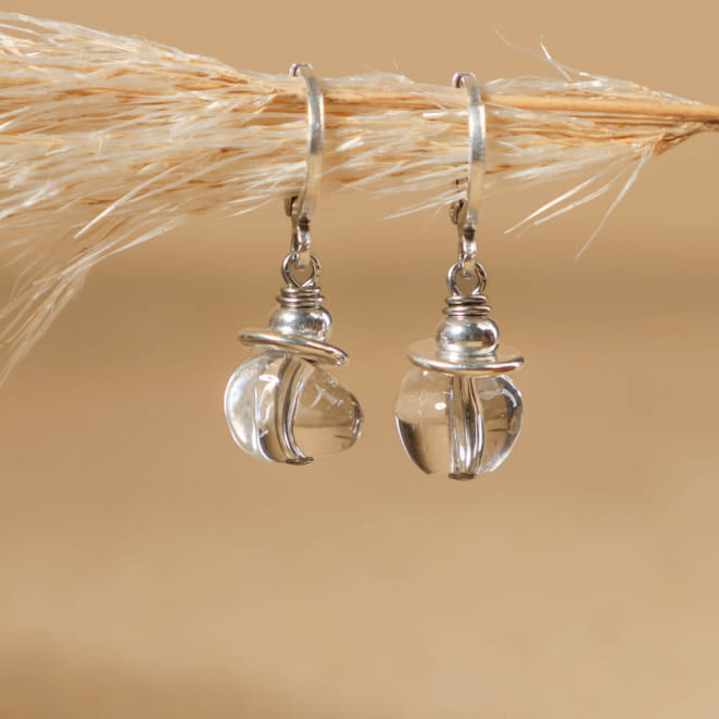 Découvrez la délicatesse des boucles d'oreilles en cristal de roche transparent Nappe. voir plus