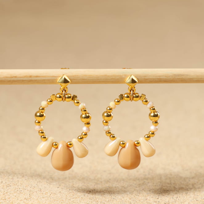 Laissez-vous séduire par le charme sobre et contemporain des boucles d’oreilles Nate. Une création raffinée qui associe le métal doré à l’éclat subtil du beige naturel. Pleines de caractère, elles s’adaptent à tous les styles, du plus décontracté au plus sophistiqué !