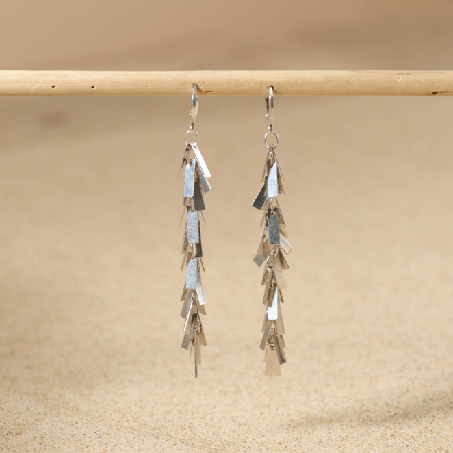 Illuminez vos journées avec les boucles d’oreilles Navidad, une cascade de chaînes argentées qui dansent avec légèreté. voir plus