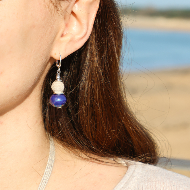 Osez une touche d'élégance naturelle avec ces boucles d'oreilles Nistos, où le bleu marine profond rencontre la luminosité de l'argent. Inspiré par l'esprit apaisant du bord de mer et la simplicité des vacances, ce bijou artisanal allie des dormeuses en métal plaqué argent 999 à des perles en céramique bleu marine et en polymère bio-sourcé. Un choix parfait pour celles qui recherchent une touche de douceur.