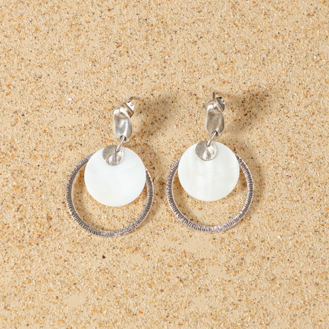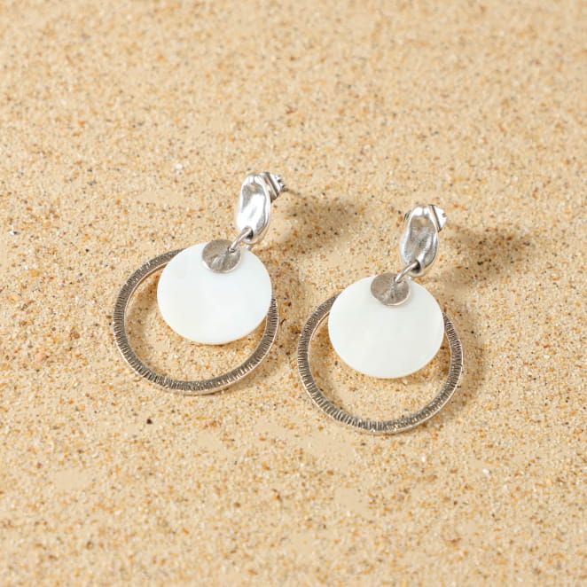 Découvrez les boucles d’oreilles Nola, une création délicate où la nacre blanche se marie au métal argenté pour évoquer la lumière des vagues et la sérénité du bord de mer. Ces boucles d’oreilles, à la fois discrètes et lumineuses, apportent une touche d’évasion à chaque instant. Leur design épuré et leur finition soignée en font un accessoire parfait pour sublimer votre style avec authenticité.