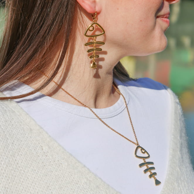 - d'un pendentif poisson articulé en métal doré à l'or fin 24 carats.
