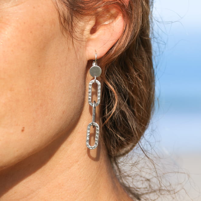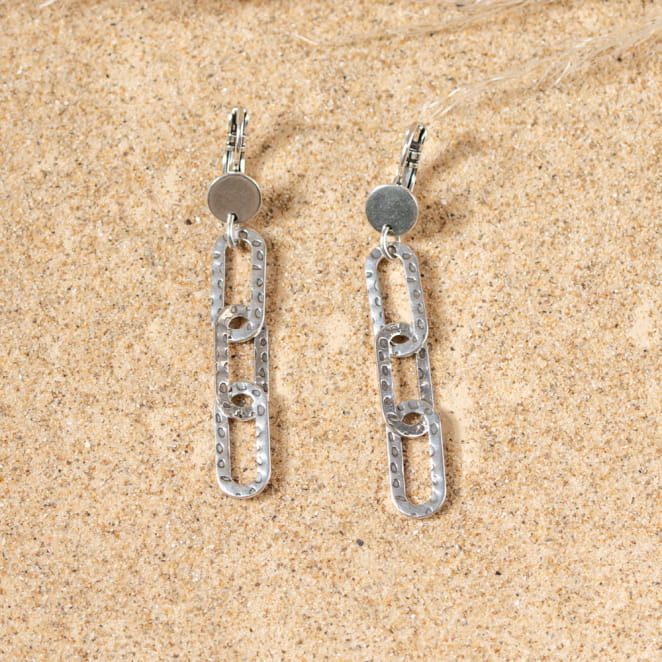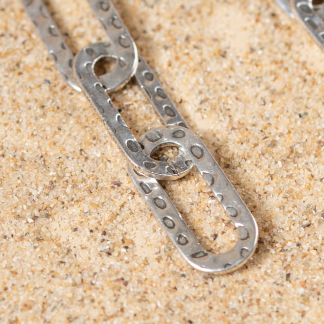 Affirmez votre style avec les boucles d'oreilles Omega ! Ces boucles argentées au design moderne se distinguent par leurs maillons texturés, reliés pour créer une allure élégante et audacieuse. Légères et raffinées, elles apportent une touche de sophistication à vos tenues, parfaites pour un look chic et contemporain qui ne passe pas inaperçu.