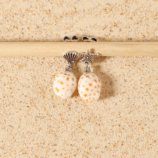 Optez pour une touche de douceur marine avec ces boucles d’oreilles Orama, où le coquillage beige s’associe à des tortillons et clous en métal plaqué argent 999. Ces petites boucles d'oreilles délicates qui rappellent les trésors ramassés sur le sable, pour un style naturel et lumineux.