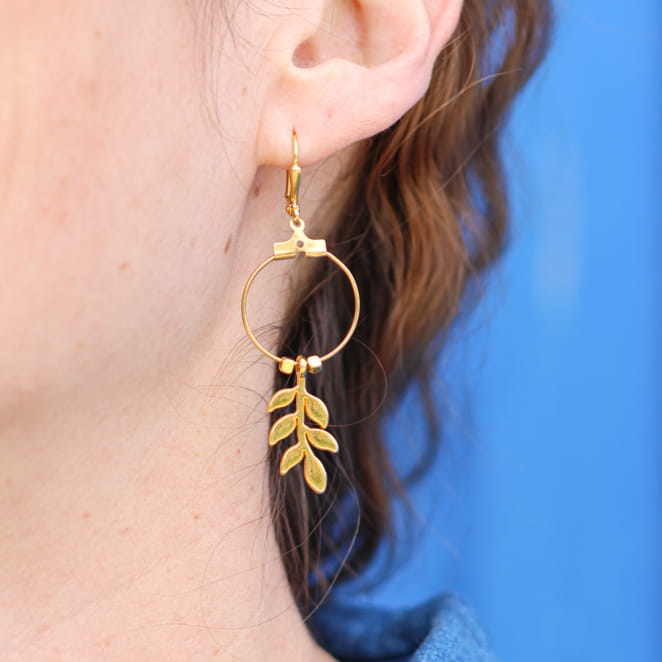 Cultivez le bonheur et illuminez votre visage avec ces boucles d'oreilles Orge. Légères et raffinées, c'est un bijou idéal pour les amoureuses de nature comme d'élégance grâce à ses pendentifs en forme de feuille doré.