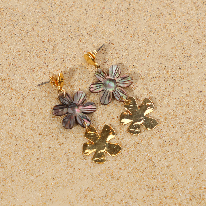 Découvrez les boucles d'oreilles Pamela, une alliance délicate entre la douceur de la nacre grise et l'éclat du doré. Ces boucles d'oreilles, inspirées par l'esprit nature et le charme des bords de mer, apportent une touche lumineuse et authentique à votre style. Elles apportent une touche subtil qui sublime vos journées ensoleillées.
