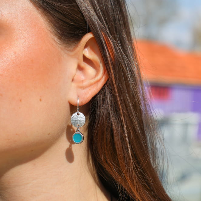 Apportez une touche de couleur à vos looks tout en délicatesse avec le bleu turquoise de ces boucles d'oreilles Plancton. Élégantes et originales, elles vous rappelleront le ciel bleu des journées ensoleillées. Un bijou discret que vous pourrez porter facilement au quotidien !