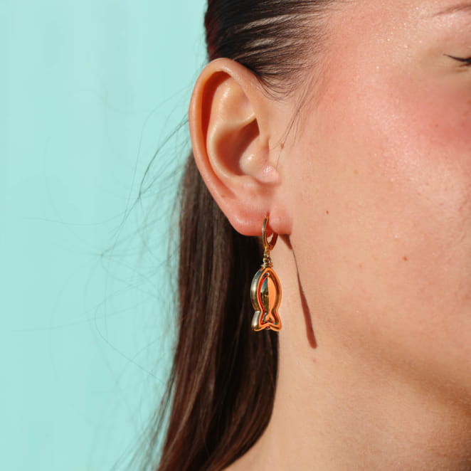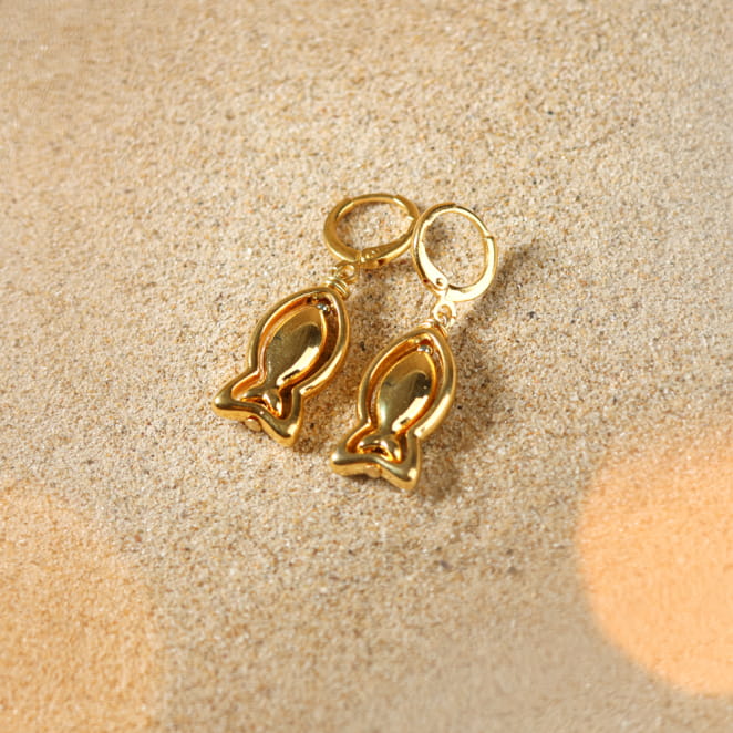 Plongez dans un univers marin avec les boucles d'oreilles dorées Remora : une exclusivité de notre e-shop. Chaque bijou est soigneusement conçu pour rappeler la douceur des vagues et l'éclat du sable sous le soleil. Avec leur finition dorée éclatante, ces boucles d'oreilles captent la lumière et apportent une touche de raffinement à votre look estival ou quotidien. Le design minimaliste et élégant de ces boucles met en valeur le symbole du poisson, associé depuis toujours à l'océan et à la liberté. Idéales pour celles qui veulent exprimer leur amour pour la mer avec discrétion et style, ces boucles d'oreilles se marient parfaitement avec une tenue décontractée en bord de mer ou une tenue chic en soirée.