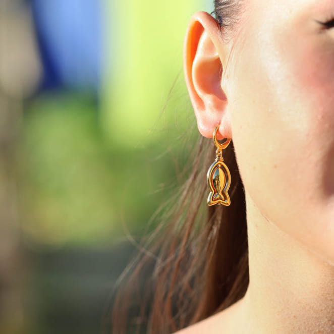 Plongez dans un univers marin avec les boucles d'oreilles dorées Remora : une exclusivité de notre e-shop. voir plus