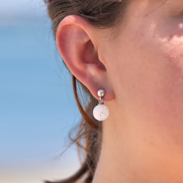 Cette paire de boucles d’oreilles peut être montée sur clips (sur simple demande lors de la commande, dans l’espace « ajoutez un mot personnalisé »).