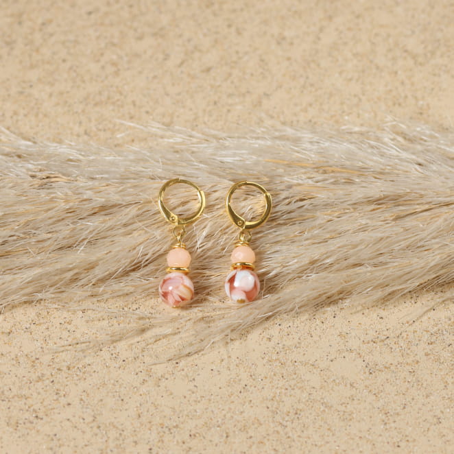 Découvrez la douceur des boucles d’oreilles pour femme Sandermo, une paire délicate qui capture la lumière comme un reflet sur l’eau. Leurs perles en verre rose, associées à l’éclat subtil de la nacre rose, évoquent la romance des couchers de soleil sur la mer. Légères et raffinées, elles apportent une touche de féminité et de fraîcheur à chaque silhouette.