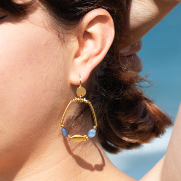 Vous aimez les bijoux colorés ? Alors craquez pour les boucles d'oreilles Saverne. Des créoles au style bohème chic qui illumineront votre visage avec leurs perles aux tons bleus, couleur de l'océan. Un mélange de nuances rêveuses et joyeuses !