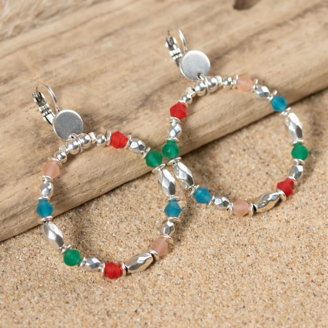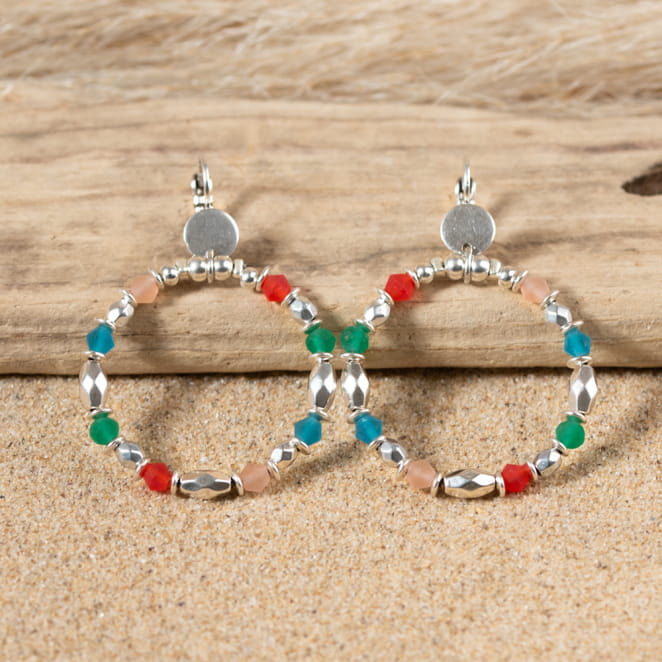 Ajoutez une touche de couleur à votre look avec les boucles d'oreilles Scapin ! Ces créoles élégantes se composent de perles argentées scintillantes, rehaussées de perles en verre coloré dans des teintes vibrantes de rose, bleu, vert et rouge. Idéales pour toutes les occasions, elles allient modernité et style, faisant de ces boucles d'oreilles un accessoire incontournable de votre collection.