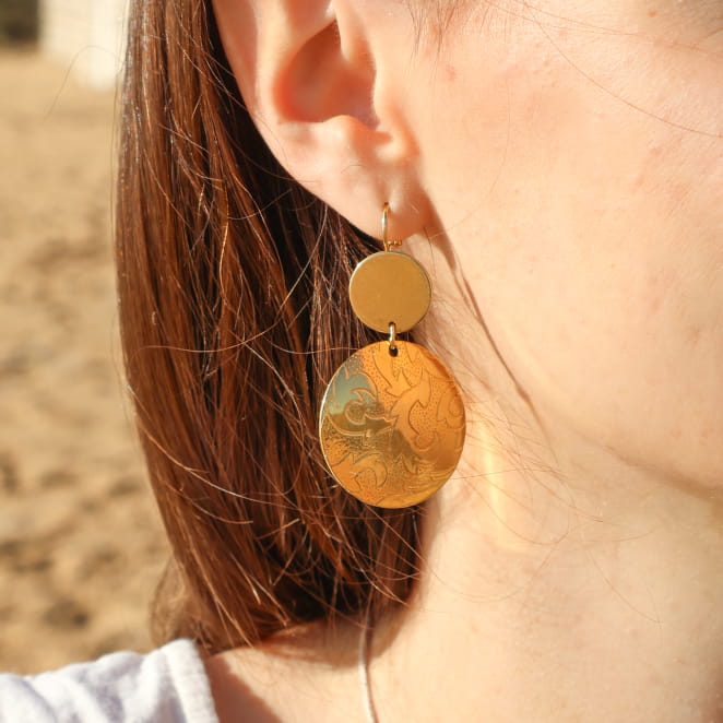 – de dormeuses en métal doré à l’or fin 24 carats,