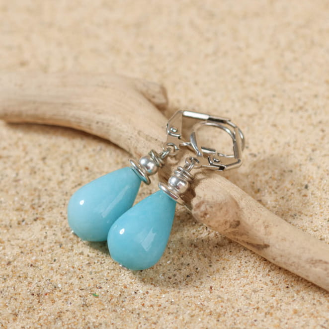 - d'une perle en pierre bleu ciel en forme de goutte,