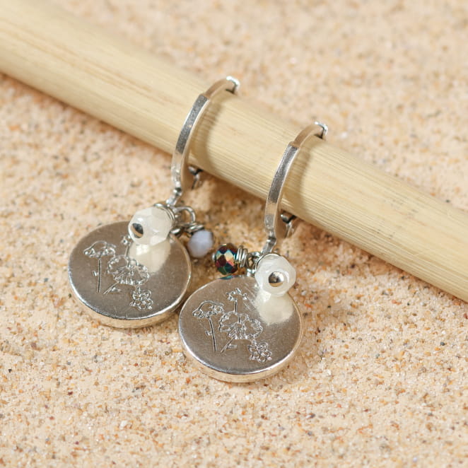 Apportez une touche de délicatesse printanière avec les boucles d’oreilles Spring en argentée et perles facettées blanches. Inspirées par la nature, elles associent un médaillon gravé d’un motif floral finement travaillé et de petites perles dans des nuances océaniques. Légères et élégantes, elles captent la lumière à chaque mouvement. Fabriquées avec soin à Oléron, elles s’invitent dans votre quotidien comme un doux rappel des instants précieux passés au bord de l’eau.