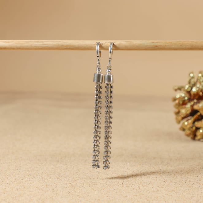 Illuminez votre style avec ces boucles d’oreilles Strass, où la chaîne en strass argentée capture la lumière comme des reflets sur l’eau. Montées sur dormeuses, elles allient douceur et élégance intemporelle, pour briller avec subtilité au rythme de vos journées.