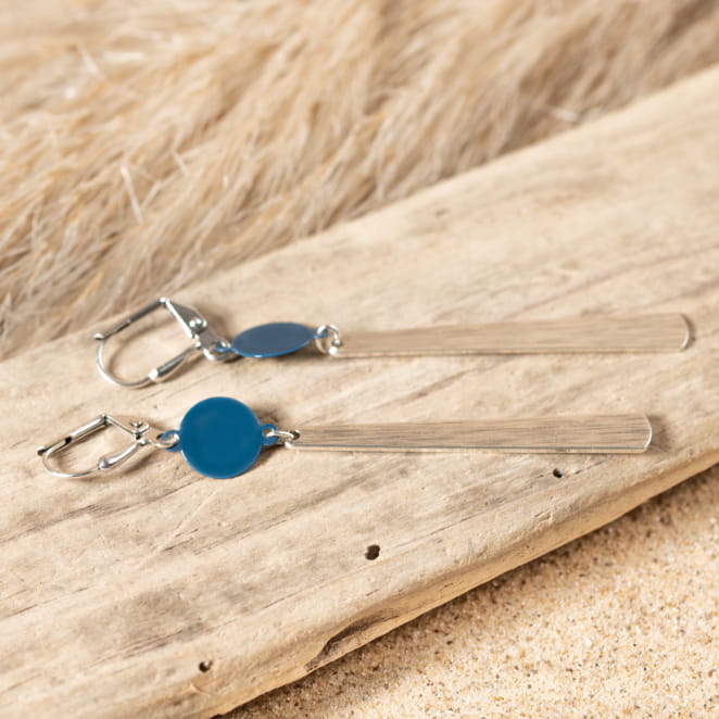 Découvrez les boucles d'oreilles pour femme Tarbes, élégantes et sophistiquées. Ces bijoux se distinguent par leur longueur et leur éclat argenté, rehaussé de magnifiques touches de bleu. Parfaites pour sublimer n'importe quelle tenue, elles allient modernité et raffinement. Un incontournable de votre collection de bijoux.