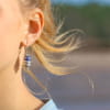 Découvrez notre paire de boucles d'orielles pour femme Thérèsa. Un bijou artisanal colorée grâce à sa perle en céramique bleue rappelant les nuances du ciel et de la mer tout en s'associant à des perles argentées façonnées. Ces boucles d'oreilles allient modernité et délicatesse pour un rendu à la fois naturel .