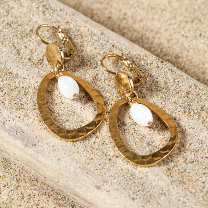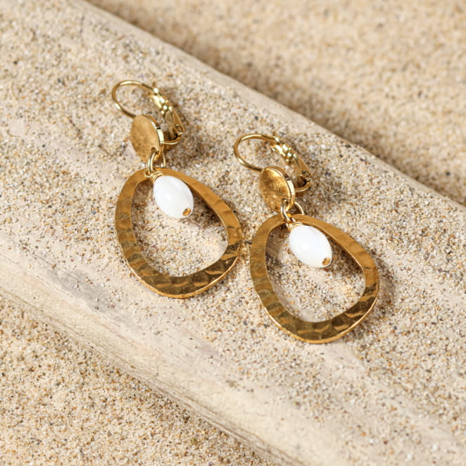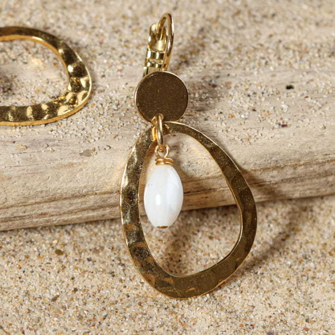 Découvrez la simplicité élégante des boucles d'oreilles Vera. Ces créoles ovales dorées sont délicatement agrémentées de perles en nacre blanche, offrant un charme discret et raffiné. Parfaites pour toutes les occasions, elles ajoutent une touche de sophistication à votre tenue quotidienne.