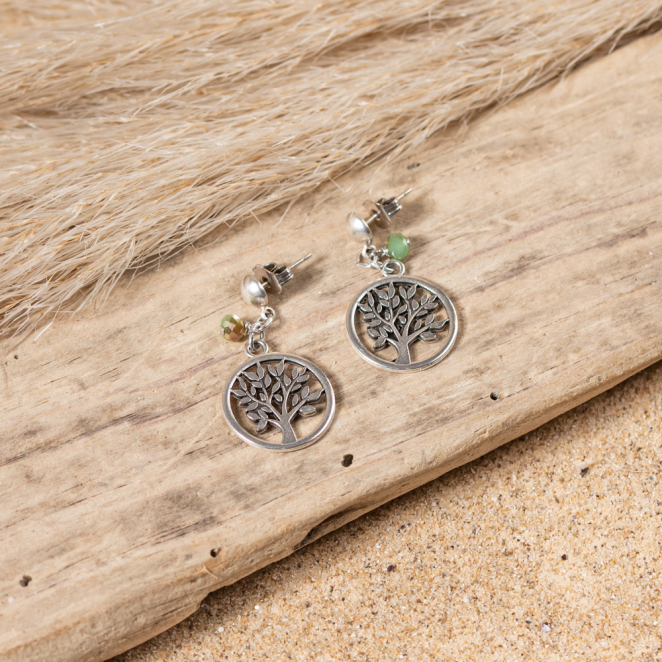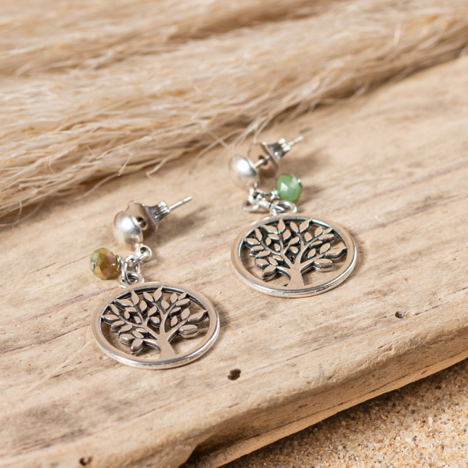 Une touche d'élégance et de délicatesse à vos coiffures avec cette paire de boucles d'oreilles Vie. Ces boucles d'oreilles sont faites pour les amoureux de la nature ! Elles représentent un arbre de vie, qui lui-même, représente force et stabilité.