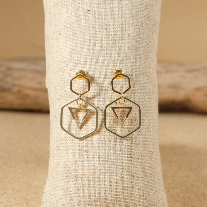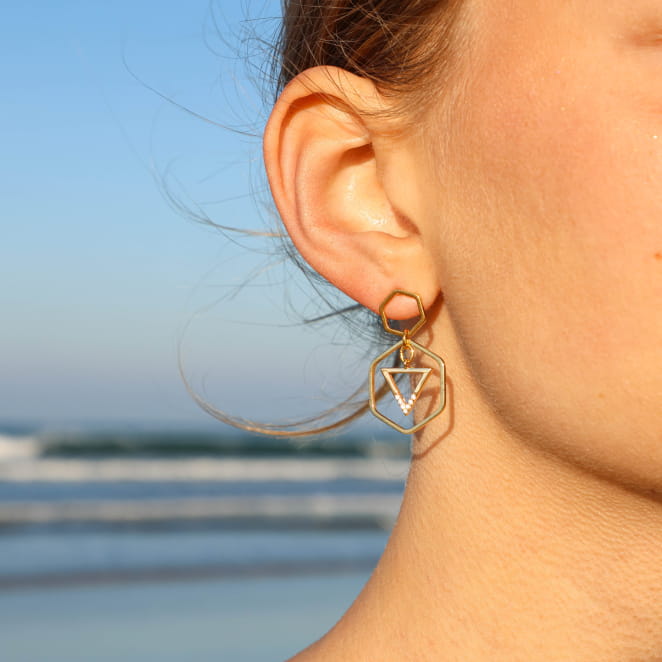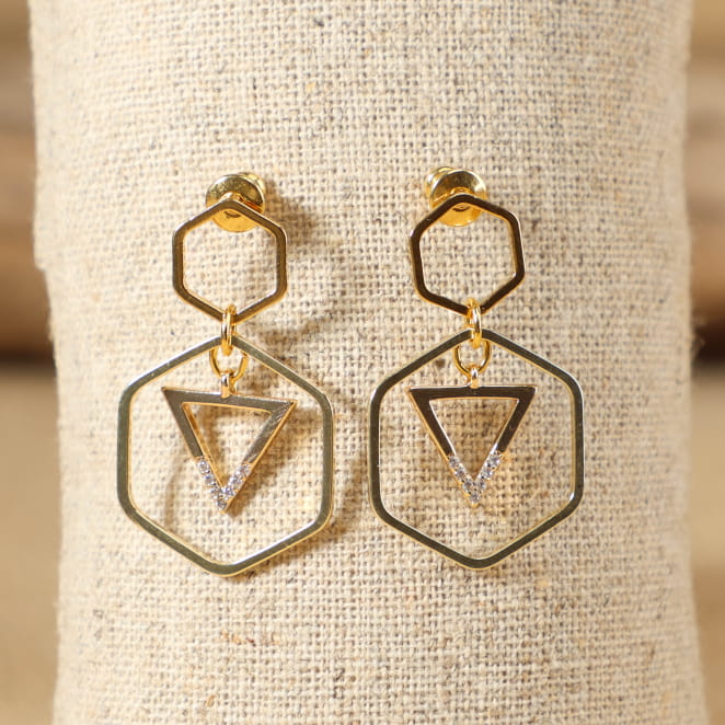 Sublimez vos oreilles avec les boucles d'oreilles pour femme Violette, un bijou qui apporte éclat et illumine votre teint grâce au doré orné de strass scintillants blancs. Ces boucles d'oreilles géométriques ajoutent originalité à votre tenue, elles sont tendances et pétillantes ! Ces pièces sont faciles à porter, Violette évoquent la lumière et les reflets brillants du soleil pour toutes les occasions.