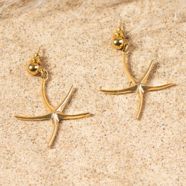 - de dormeuses en métal doré d'un flash d'or 24 carats.