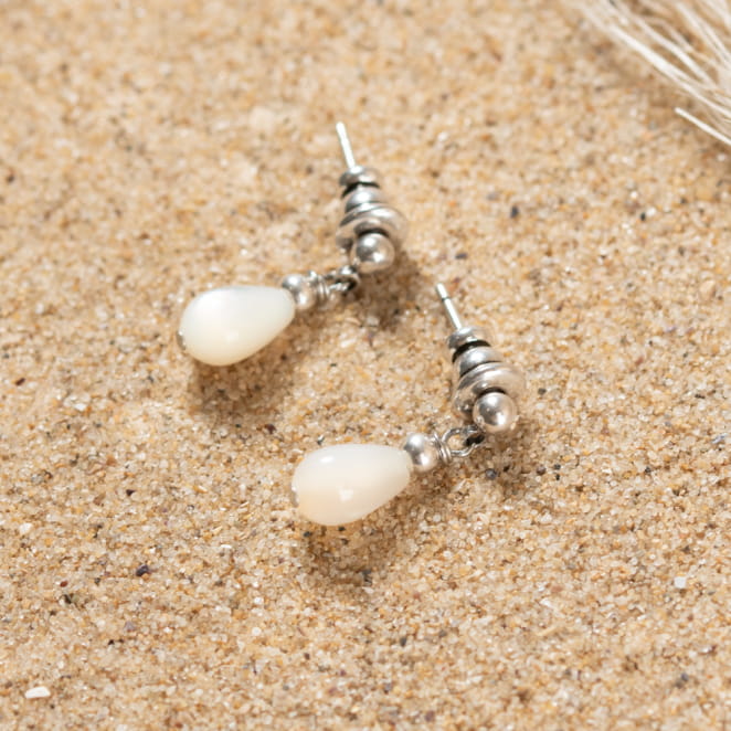 Découvrez les boucles d'oreilles Zafu, l'essence même de la discrétion. Dotées d'un clou d'oreille argenté et d'un délicat pendentif goutte en nacre blanc, elles incarnent la simplicité sophistiquée. Parfaites pour une élégance subtile au quotidien, ces bijoux ajoutent une touche de raffinement à chaque tenue, alliant finesse et charme discret.