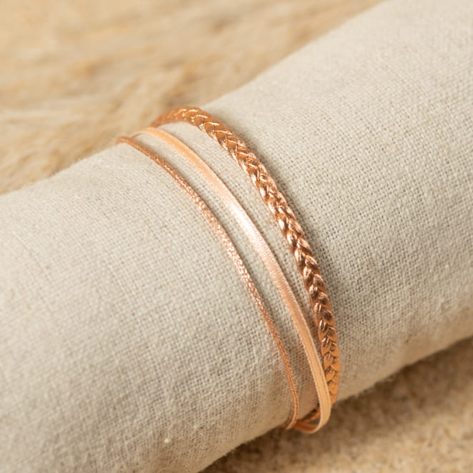 Laissez-vous charmer par le bracelet femme Agneau. Ce bijou délicat doré rose, composé de trois brins raffinés, apporte une allure romantique. Son cordon tressé ajoute une touche précieuse à votre poignet. Il sublime chaque mouvement avec grâce : parfait pour celles qui recherchent une élégance subtile ! Adoptez ce bracelet et laissez sa douceur enchanter votre quotidien.