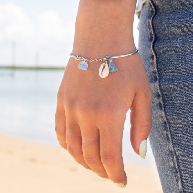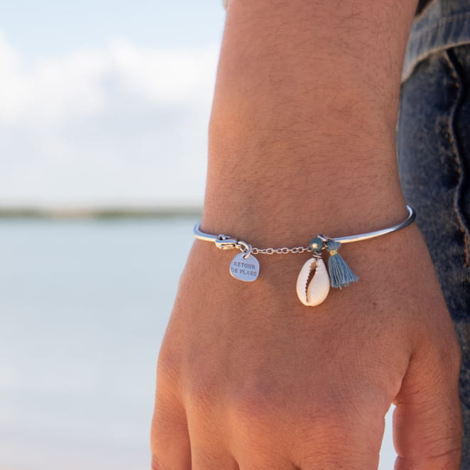 Le bracelet Amélie incarne l'éclat et l'élégance d'un jonc argenté rehaussé d'un délicat coquillage. Évoquant les doux souvenirs estivaux à la plage, cet accessoire rayonne de chaleur et de charme. Une pièce qui allie subtilement le style et les sensations estivales pour une touche de sophistication lumineuse au poignet.