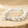 Notre bracelet pour femme en perles : Aquarium, reflète toute la beauté du bord de mer. Ses petites perles argentées captent la lumière avec éclat, tandis que les perles naturelles en howlite brillant apportent une touche lumineuse. Le pendentif argenté en forme de poisson évoque une note marine nous rappelant l'univers marin, symbole emblématique de l’océan, ajoute de l'originalité à votre tenue. Notre bracelet pour femme est un intemporel qui habille le poignet d’une touche marine subtile.