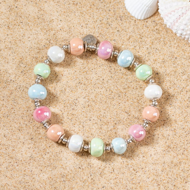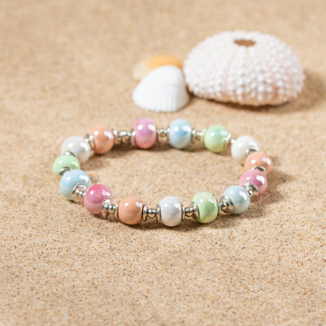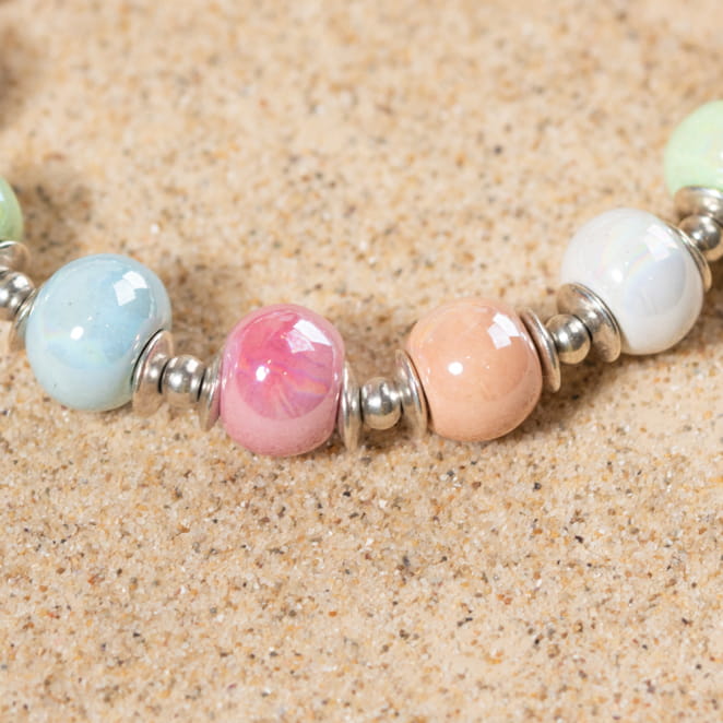 - de perles en céramiques pastel multicolore,